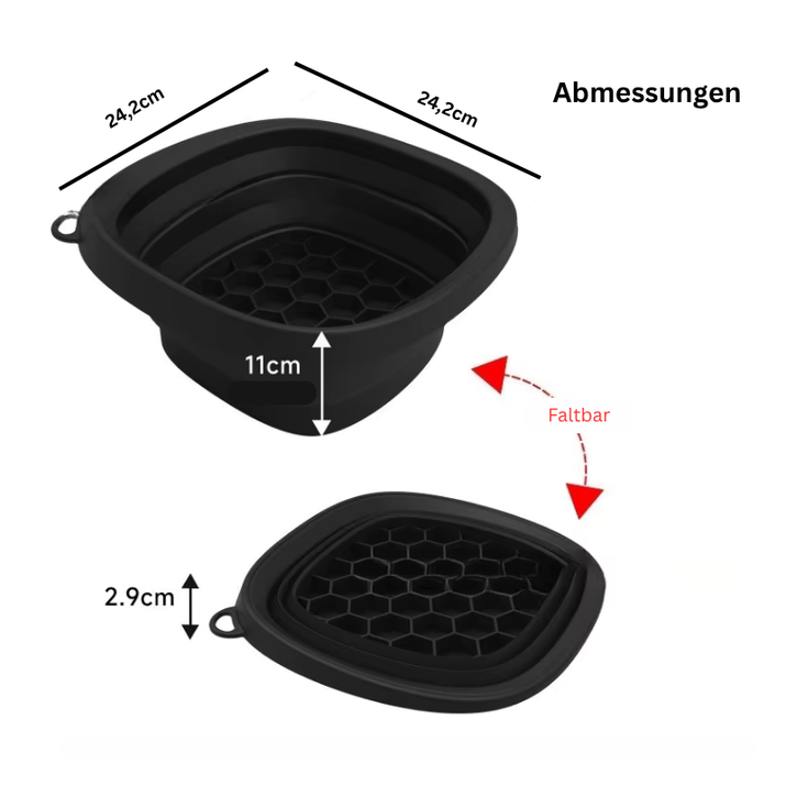 Am nächsten Morgen nimmst du sie heraus, ziehst die flexible Wanne leicht auf, gibst etwas kaltes Wasser hinein – und schon kann’s losgehen!